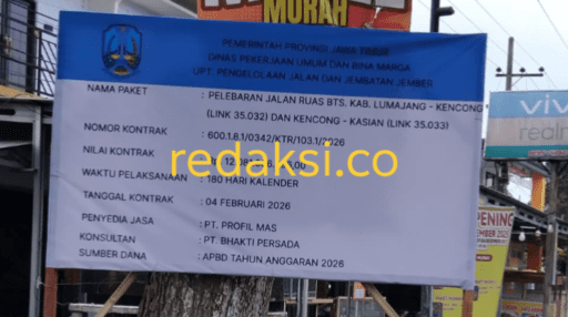 JEMBER, redaksi.co – Setelah lama dikeluhkan warga, jalan rusak di wilayah Kecamatan Kencong akhirnya mulai ditangani melalui proyek senilai Rp12.081.066.396,00 yang bersumber dari APBD Tahun Anggaran 2026.