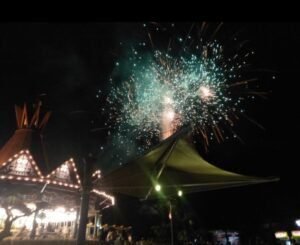 Pesta kembang api diluncurkan secara spektakuler dari area Turangga Rangga, memecah gelap dengan kilatan warna-warni yang menari di udara, Setiap ledakan cahaya disambut sorak sorai ribuan penonton, menghadirkan momen magis yang seolah menghentikan waktu.