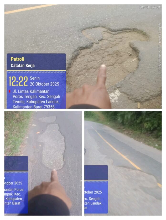 ” Kami melihat mulai dari jalan Sidas, Bukit Sehak, jalan Lintas Kalimantan poros tengah, Kayu Ara Kecamatan Mandor Kabupaten Landak hingga menuju batas Anjungan, banyak lobang besar menganga disekujur badan jalan yang berpotensi menimbulkan kecelakaan, ” ujar HS, warga sekitar.