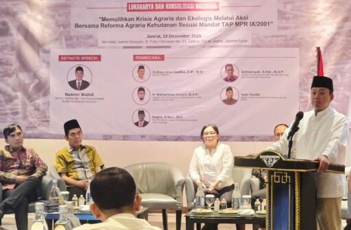 Redaksi.co, Jakarta | Upaya memulihkan krisis agraria dan ekologis di Indonesia kembali ditegaskan melalui Lokakarya dan Konsolidasi Nasional bertajuk “Memulihkan Krisis Agraria dan Ekologis Melalui Aksi Bersama Reforma Agraria Kehutanan Sesuai Mandat TAP MPR IX/2001” yang digelar di Artotel Gelora Senayan, Jumat (19/12).