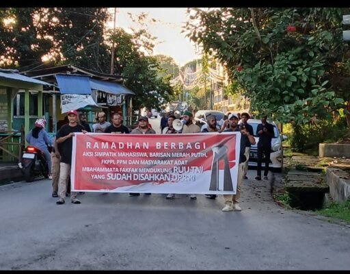 Terhadap hal itu, Mahasiswa dan sejumlah Organisasi Kemasyarakatan (Ormas) di Kabupaten Fakfak Papua Barat, minggu (23/3/2025) sore, menggelar aksi dukungan terhadap pengesahan RUU TNI, bertempat di Markas Komando Distrik Militer (Makodim) 1803 Fakfak, bertajuk Ramadhan Berbagi dan aksi simpatik Mahasiswa dan Ormas Barisan Merah Putih, FKPPI, PPM, dan Masyarakat Adat Mbaham Matta mendukung RUU TNI yang telah disahkan DPR.