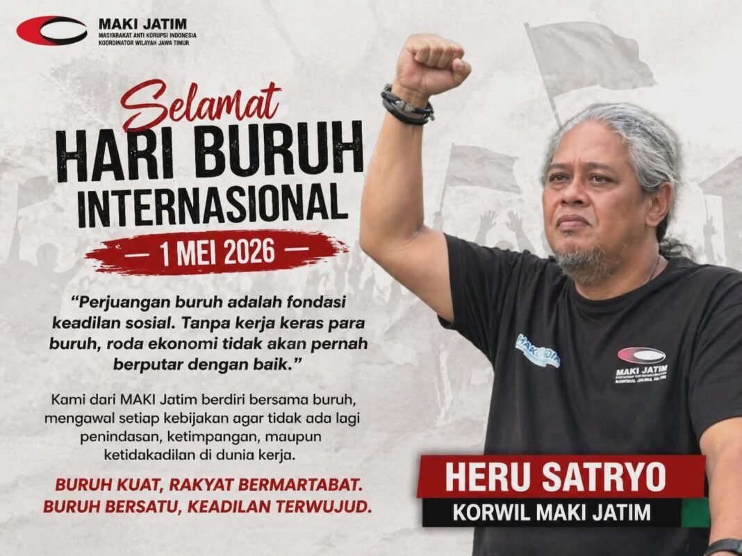 JEMBER,redaksi.co – Memperingati Hari Buruh Internasional 1 Mei 2026, Masyarakat Anti Korupsi Indonesia Koordinator Wilayah Jawa Timur melontarkan peringatan keras kepada pemerintah dan pelaku usaha agar tidak bermain-main dengan hak buruh.