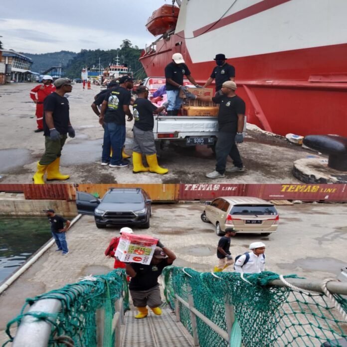 “Sesuai permintaan dari pihak perusahaan, hari ini kita sudah memasuki minggu ketiga pengiriman. Prosesnya sama seperti pengiriman pertama dan kedua. Ada banyak produk yang kita kirim ke kapal, termasuk sayur-sayuran, buah-buahan hasil pertanian masyarakat, serta produk toko seperti susu dan cokelat,” ujarnya.
