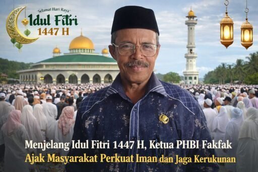 Fakfak, Redaksi.co – Menjelang perayaan Hari Raya Idul Fitri 1447 Hijriah, Ketua Panitia Hari Besar Islam (PHBI) Kabupaten Fakfak, Mohjak Rengen, mengajak seluruh masyarakat untuk menjadikan momentum Idul Fitri sebagai kesempatan meningkatkan keimanan dan ketakwaan kepada Tuhan Yang Maha Esa.
