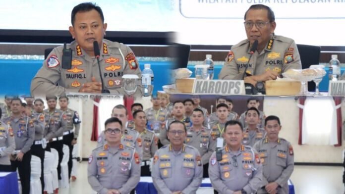 Kegiatan ini dipimpin oleh Karo Ops Polda Kepri Kombes Pol Taswin, S.I.K., M.H., Dirlantas Polda Kepri Kombes Pol Taufiq Lukman Nurhidayat, S.I.K., M.H., serta dihadiri oleh Pejabat Utama Ditlantas Polda Kepri dan Seluruh Peserta Latpraops Keselamatan Seligi 2026. Kamis (29/1/2026) siang.
