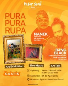 Pameran Seni “Pura Pura Rupa”, menghadirkan karya dua seniman, Nanek dan Bang Black, yang menampilkan eksplorasi visual dan karakter kuat dan refletif, Pameran ini berlangsung pada tanggal 24-30 April 2026 di North Art Space, dilengkapin dengan Program art talk, live musik, dan interaksi langsung dengan seniman,