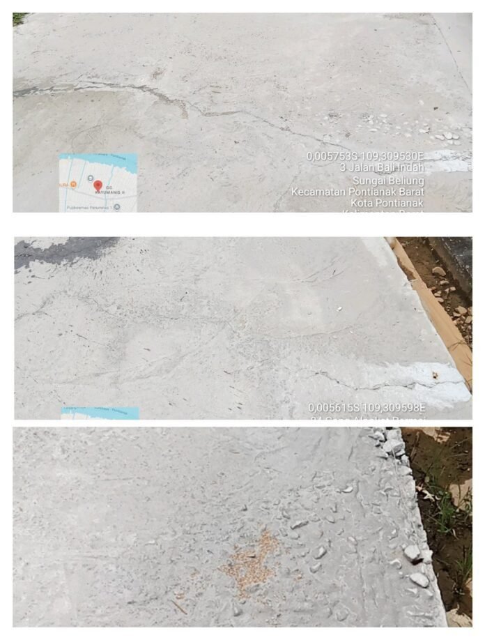 Kami sudah turun melakukan cek lapangan dan ketemu dg pak RT setempat. Info dari RT jalan baru 3 hari dicor, rambu sudah dibuka oleh warga & dilewati mobil sehingga mengakibatkan kondisinya retak² karena blm cukup umur betonnya.