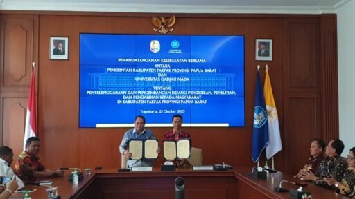 YOGYAKARTA, Redaksi.co — Pemerintah Daerah Kabupaten Fakfak, Provinsi Papua Barat, menandatangani Memorandum of Understanding (MoU) dengan Universitas Gadjah Mada (UGM), Rabu pagi, 22 Oktober 2025, bertempat di Auditorium Lantai II Kampus UGM, Yogyakarta.