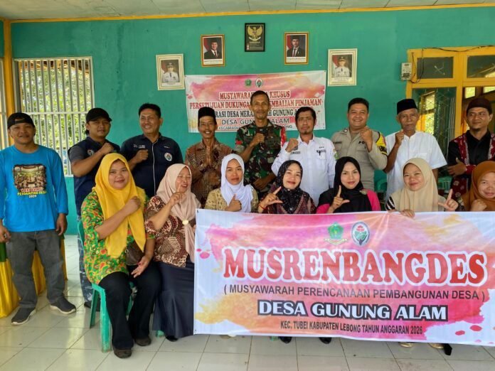 Lebong-Redaksi.co Pemerintah Desa gunung alam (Pemdes) , Kecamatan tubei Kabupaten Lebong bersama Badan Permusyawaratan Desa (BPD), secara resmi menggelar Musyawarah Desa (Musdes) yang berfokus pada Penyusunan Rencana Kerja Pemerintah Desa, Tahun Anggaran 2026. Acara penting ini dilangsungkan di Balai Desa gunung alam.