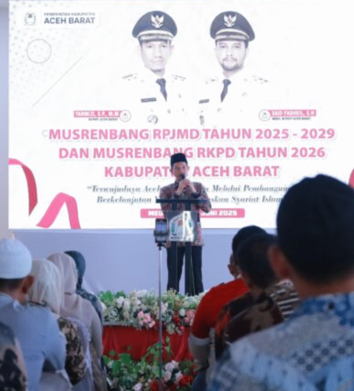 Pemerintah Kabupaten Aceh Barat menggelar Musyawarah Perencanaan Pembangunan Jangka Menengah Daerah (RPJMD) 2025–2029 dan Musrenbang RKPD 2026, di Aula Teuku Umar Bappeda,Kamis 26/6/2025
