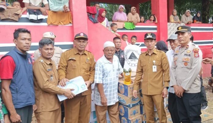 Penyaluran bantuan ini dipimpin langsung oleh Bupati Aceh Barat, Tarmizi SP, didampingi Mulyadi Kepala Dinas Sosial serta T.Ronal Nehdiansyah BPBD Aceh Barat