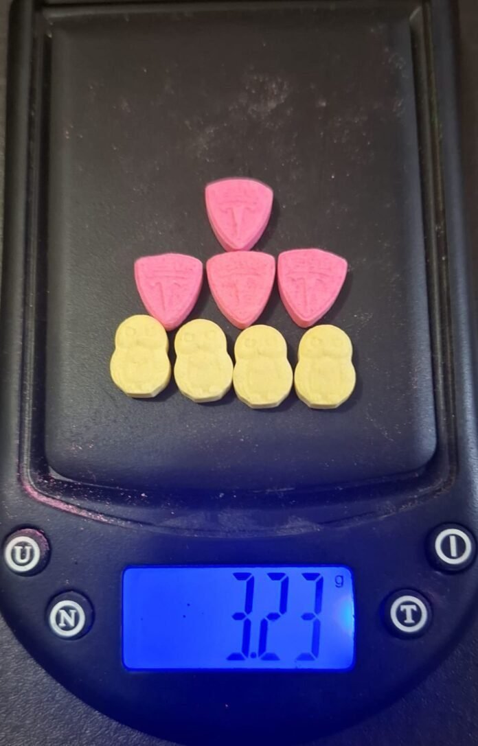 Kemudian dilakukan pemeriksaan terhadap terduga pelaku sehingga ditemukan dari kantong celana sebelah kirinya barang bukti narkoba jenis pil ekstasi sebanyak 8 (delapan) butir berwarna merah muda dan warna kuning.