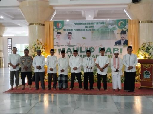 Fakfak.Redaksi.Co-Bupati Kabupaten Fakfak menghadiri peringatan Maulid Nabi Muhammad SAW 1447 Hijriah/2025 Masehi bersama Forkopimda dan pengurus Peringatan Hari Besar Islam (PHBI) di masjid Baitul Makmur, Jumat 5/9/2025.