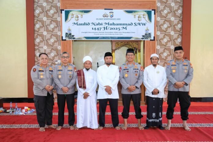 REDAKSI.CO- Kepolisian Daerah Maluku Utara menyelenggarakan peringatan Maulid Nabi Muhammad SAW 1447 H / 2025 M di Masjid Al-Muhajirin Polda Maluku Utara, Sofifi, pada Kamis (4/9).