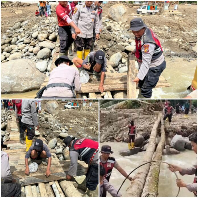 - Kabupaten Agam – Jembatan darurat yang menghubungkan antardesa di Nagari Salareh Aia, Kabupaten Agam, Sumatera Barat (Sumbar), hanyut terbawa arus saat terjadi banjir. Polda Sumbar dan Riau kini membangun kembali jembatan darurat tersebut.
