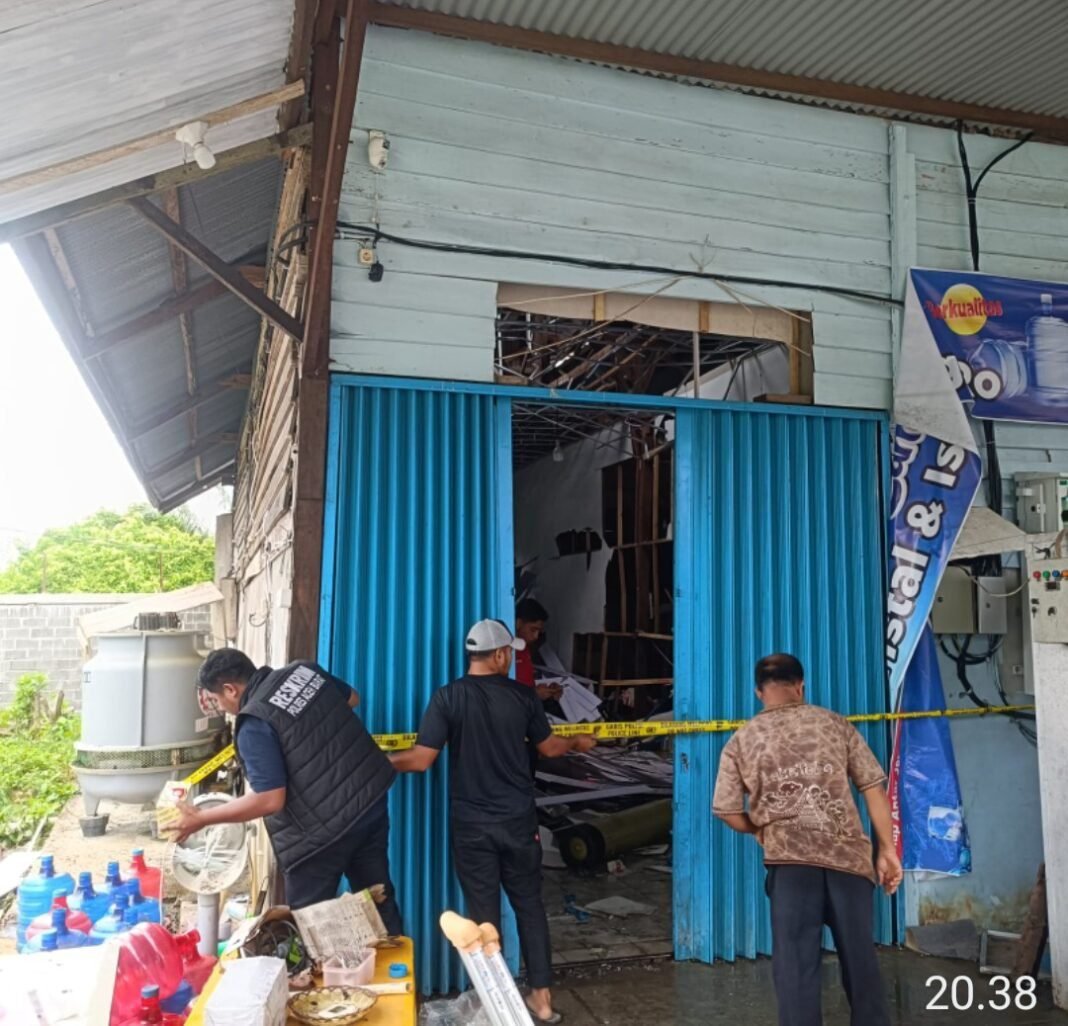 Polres Aceh Barat melakukan penyelidikan terhadap peristiwa ledakan yang terjadi di pabrik es kristal dan depot air minum isi ulang Zam-Zam Mia di Lorong Nangka 1, Gampong Ujong Baroh, Kecamatan Johan Pahlawan, Kabupaten Aceh Barat, pada Minggu 9/11/2025) Sekira pukul 12.25 WIB