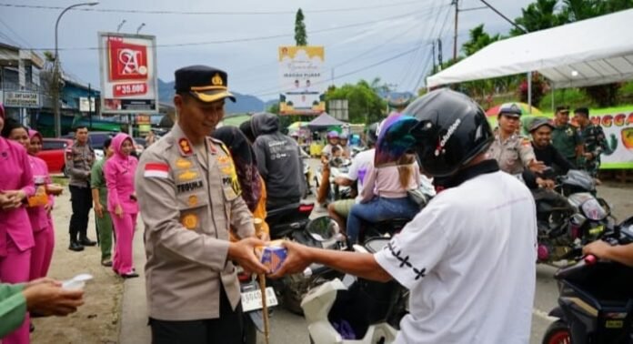 Bengkayang, Kalbar – Redaksi.co Dalam semangat berbagi dan mempererat sinergi antara TNI-Polri, Polres Bengkayang bersama Kodim 1209/Bky, Kompi C Yonif 645/GTY, dan Koramil 01 Bengkayang menggelar kegiatan sosial berupa pembagian takjil bagi masyarakat dan pengguna jalan. Kegiatan ini berlangsung di depan Pos Satlantas Polres Bengkayang, Kamis (6/3/2025) sore.