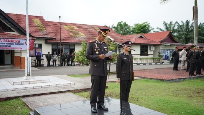 Upacara ini dipimpin langsung oleh Kapolres Bengkayang AKBP Teguh Nugroho, S.H., S.I.K., M.I.K., yang bertindak sebagai Inspektur Upacara. Kegiatan ini turut dihadiri jajaran Pejabat Utama, para perwira, staf, serta personel dari berbagai satuan di lingkungan Polres Bengkayang.