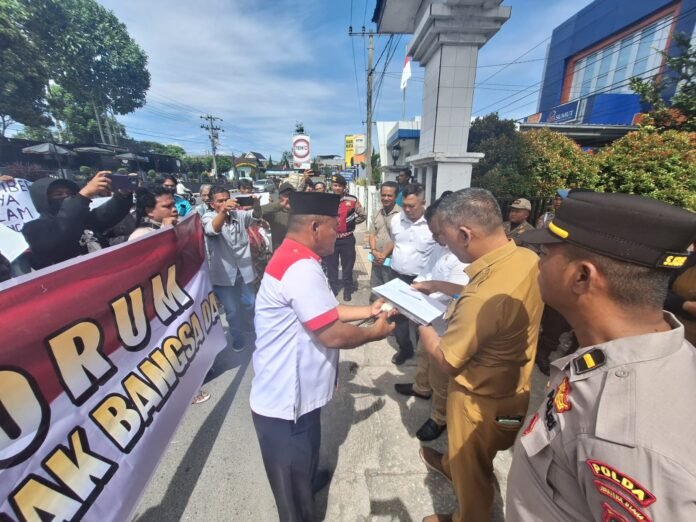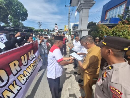 Redaksi.co Dairi – Polres Dairi melakukan pengamanan saat aksi unjuk rasa yang dilakukan Forum Peduli Anak Bangsa (FPAB) di depan Kantor Bupati Dairi, Senin (20/1/2025).
