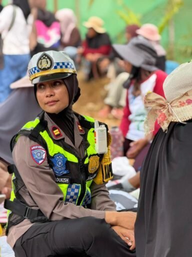 Dalam suasana yang santai namun tetap menjalankan tugas, Iptu Masqun duduk bersama warga dan berbincang secara langsung. Pendekatan humanis itu dilakukan sebagai upaya membangun komunikasi yang baik serta menjaga situasi tetap kondusif selama aksi berlangsung.