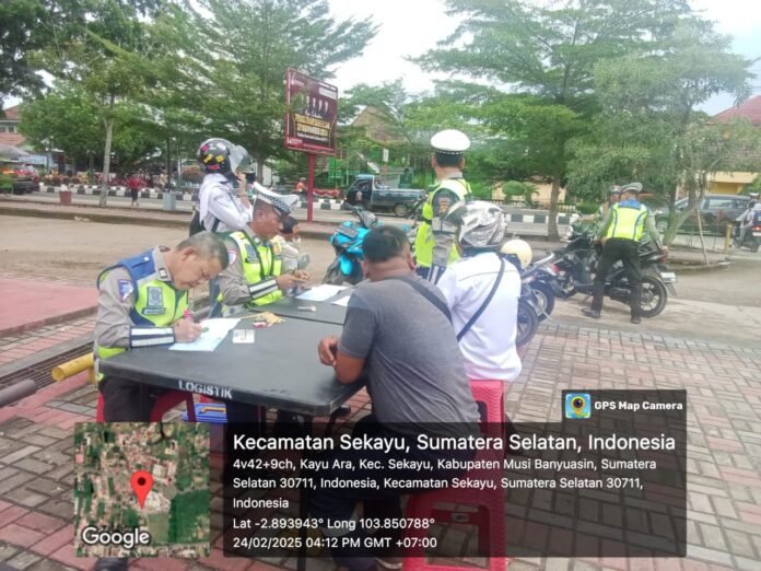 Muba,Warta.in Sebagai bagian dari Operasi Keselamatan Musi 2025 Polres Musi Banyuasin (Muba) terus menggencarkan razia kendaraan guna meningkatkan kesadaran dan kepatuhan masyarakat terhadap peraturan lalu lintas kali ini giat dilaksanakan di seputaran bundaran (tugu bintang) Kecamatan sekayu.Senin,24 Februari 2024