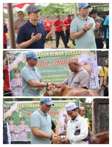 Pontianak ,Polda Kalbar – Dalam rangka memperingati Hari Raya Idul Adha 1446 Hijriah, Polresta Pontianak melaksanakan kegiatan pemotongan dan penyaluran hewan qurban pada Sabtu, 7 Juni 2025, bertempat di halaman Polsek Pontianak Kota.