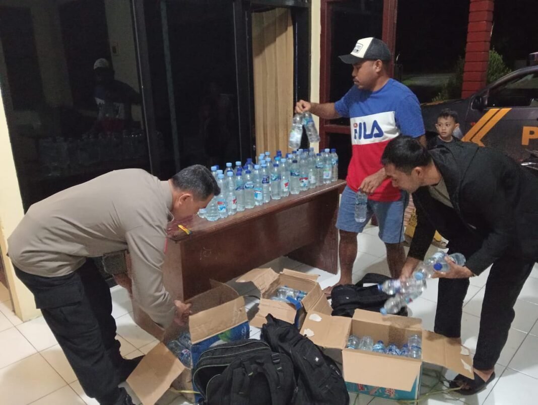 “Pada saat melakukan pemeriksaan terhadap sebuah kapal penumpang yang akan berangkat dengan tujuan kota Ternate kami menemukan tumpukan 3 kardus Aqua dan 3 tas jinjing yang diduga berisi miras ,” ujar Ipda Syukri.