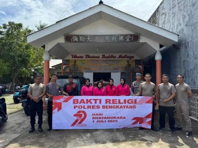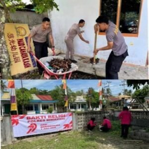 Bengkayang, kalbar – Redaksi.co Rabu 18 juni 2025 dalam rangka menyambut Hari Bhayangkara Polri ke-79, Polda kalbar, polres bengkayang, Polsek Sungai Raya Kepulauan, perso kl polsek sungai raya kepulauan melaksanakan kegiatan kerja bakti Religi bersama di Vihara Dharma Buddha Maitreya di Dusun Teluk Suak, Desa Karimunting, Kecamatan Sungai Raya Kepulauan, Kabupaten Bengkayang. Kamis (19/06/2025)