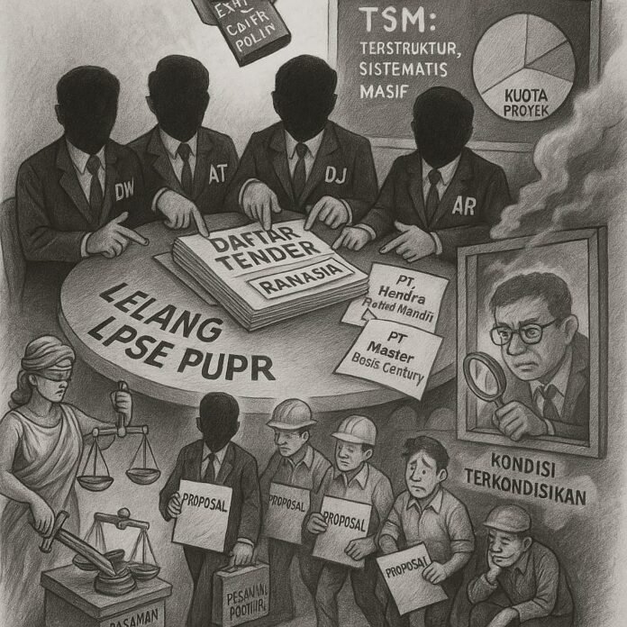 Skema Sistematis: Dugaan TSM Praktik ini disebut berjalan secara TSM – Terstruktur, Sistematis, dan Masif. Pola serupa disebut terjadi pula dalam kasus Dinas PUPR Mempawah yang kini ditangani KPK. Proyek-proyek yang dibiayai dari uang rakyat justru menjadi ajang pengkondisian demi kepentingan kelompok elit.