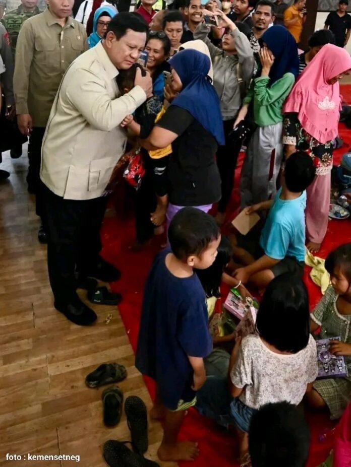 Presiden RI Prabowo Tinjau Posko Pengungsian di GOR Pandan