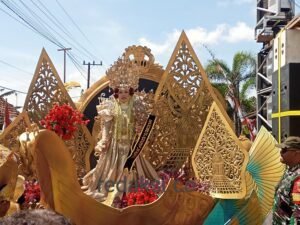 Salah satu momen paling mencuri perhatian adalah hadirnya catwalk budaya. Layaknya peragaan busana, para model tampil percaya diri memperagakan kostum yang terinspirasi dari kekayaan tradisi lokal. Lenggak-lenggok mereka di atas panggung tidak sekadar memamerkan busana, tetapi juga menghadirkan cerita tentang identitas dan kebanggaan budaya Nusantara.