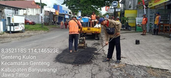 BANYUWANGI, UPTD Binamarga Genteng melakukan tindakan cepat dengan melaksanakan perbaikan jalan berlubang di wilayah Dusun Maron, Kecamatan Genteng, Kabupaten Banyuwangi, Kamis (20/11/2025).