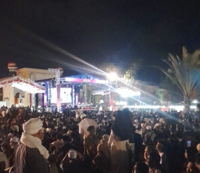 Ribuan masyarakat memadati halaman Masjid Agung Baitul Makmur Meulaboh ,mereka hadir untuk menyaksikan secara langsung pesona da’i kondang juara Aksi Indonesia 2026, Tgk Habibi An Nawawi, Kamis 2/4/2026