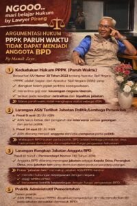 Dengan demikian, keterlibatan PPPK paruh waktu sebagai anggota BPD dinilai tidak memiliki dasar hukum yang kuat dan berpotensi menimbulkan persoalan hukum di kemudian hari.