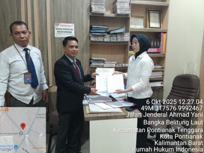 PONTIANAK – Ketua Dewan Pimpinan Daerah (DPD) Rumah Hukum Indonesia Kabupaten Ketapang, Ahmad Upin Ramadan, resmi mengambil langkah hukum atas dugaan pencemaran nama baik dan fitnah yang menyeret namanya dan didampingi langsung oleh Kepala DPP Biro Hukum Indonesia, AKP (P) Dr. Dalan Ersada Bangun, S.H., M.H., CFLA., CLA., CPLA., CPS. Laporan tersebut telah disampaikan langsung ke Kepolisian Daerah (Polda) Kalimantan Barat pada Senin, 6 September 2025.