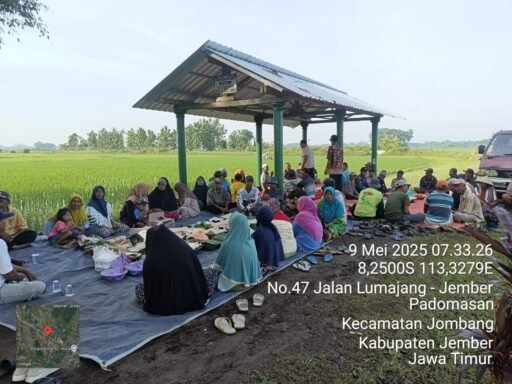 JEMBER, Redaksi.co – Puluhan petani yang tergabung dalam Gabungan Kelompok Tani (Gapoktan) Tani Rukun, Sido Dadi, Ngundi Rejeki menggelar tasyakuran tutup tanam padi di area persawahan Desa Keting Kecamatan Jombang Kabupaten Jember (09/05/2025).