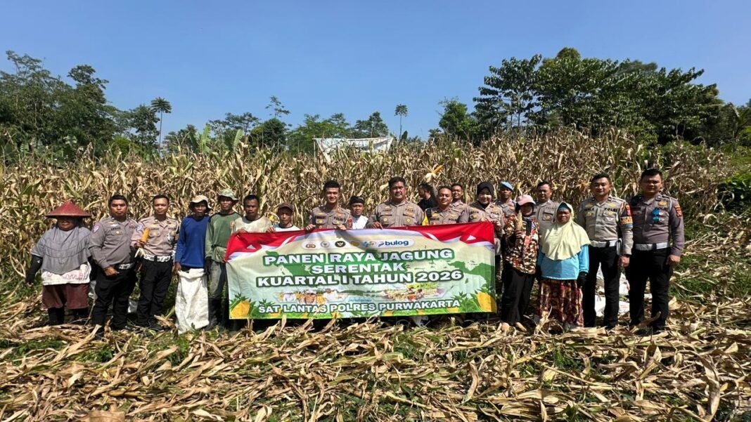 PURWAKARTA ( βπΌπ»πΈπππ.βπ ) — Komitmen Polres Purwakarta dalam mendukung program swasembada pangan tahun 2026 kembali diwujudkan melalui kegiatan panen jagung hibrida Kuartal I yang dilaksanakan oleh Satuan Lalu Lintas (Sat Lantas) bersama kelompok tani di Kabupaten Purwakarta.
