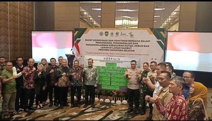 Redaksi.co | Palembang,- Pemerintah Provinsi (Pemprov) Sumatera Selatan (Sumsel) melalui Organisasi Perangkat Daerah (OPD) dalam hal ini dari Dinas Lingkungan Hidup dan Pertanahan (DLHP) Provinsi Sumsel menggelar rapat koordinasi (rakor) dan komitmen bersama dalam pencegahan, pengendalian dan penanggulangan kebakaran hutan, kebun, dan lahan di lahan gambut provinsi Sumsel.