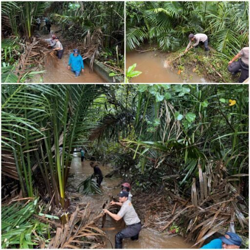 Meranti – Sebagai wujud kepedulian terhadap lingkungan dan upaya pencegahan banjir, personel Polsek Tebing Tinggi Barat yang dipimpin langsung oleh Kapolsek IPDA D.TURNIP, S.E bersama masyarakat melaksanakan kegiatan gotong royong membersihkan saluran air di wilayah setempat. Kegiatan ini dilakukan dengan menyusuri aliran parit dan sungai kecil yang tertutup oleh ranting, pelepah pohon, serta tumpukan sampah alami yang menghambat aliran air menuju pesisir pantai.
