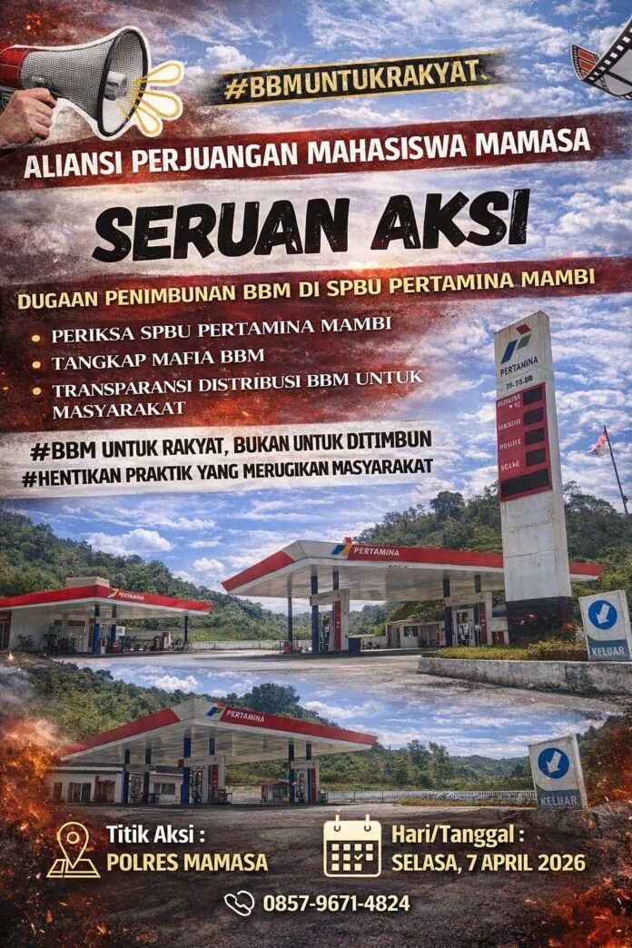 Redaksi.co MAMASA : Suasana memanas. Aliansi Perjuangan Mahasiswa Mamasa (APMM) melontarkan ultimatum keras terkait dugaan penimbunan bahan bakar minyak (BBM) di SPBU Mambi. Operasional SPBU yang hanya buka pada malam hari dan menutup layanan di siang hari memicu kecurigaan publik, bahkan disebut sebagai pola janggal yang berpotensi merugikan masyarakat luas.
