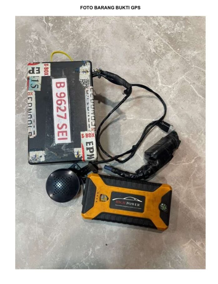 Dua unit telepon genggam, segel BBM, serta perangkat GPS.