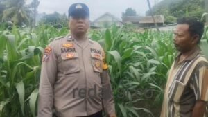 Dengan senyum ramah dan sepatu yang mulai belepotan lumpur, anggota Bhabinkamtibmas ini hadir di tengah para petani yang tengah berjibaku menyiapkan masa pembuahan jagung. Kunjungannya bukan sekadar seremonial, melainkan bentuk nyata kepedulian aparat terhadap “dapur rakyat”.