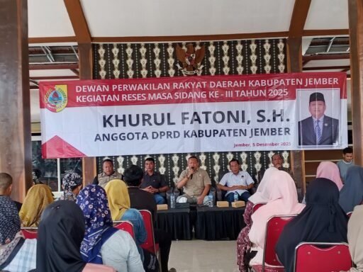 JEMBER, redaksi.co – Anggota DPRD Kabupaten Jember, Khurul Fatoni, S.H., dari Fraksi NasDem Komisi B Dapil 6, menggelar Reses Masa Sidang Ke-3 Tahun 2025 di Kantor Desa Grenden, Kecamatan Puger, Kabupaten Jember, Jawa Timur, pada Jumat (5/12/2025).