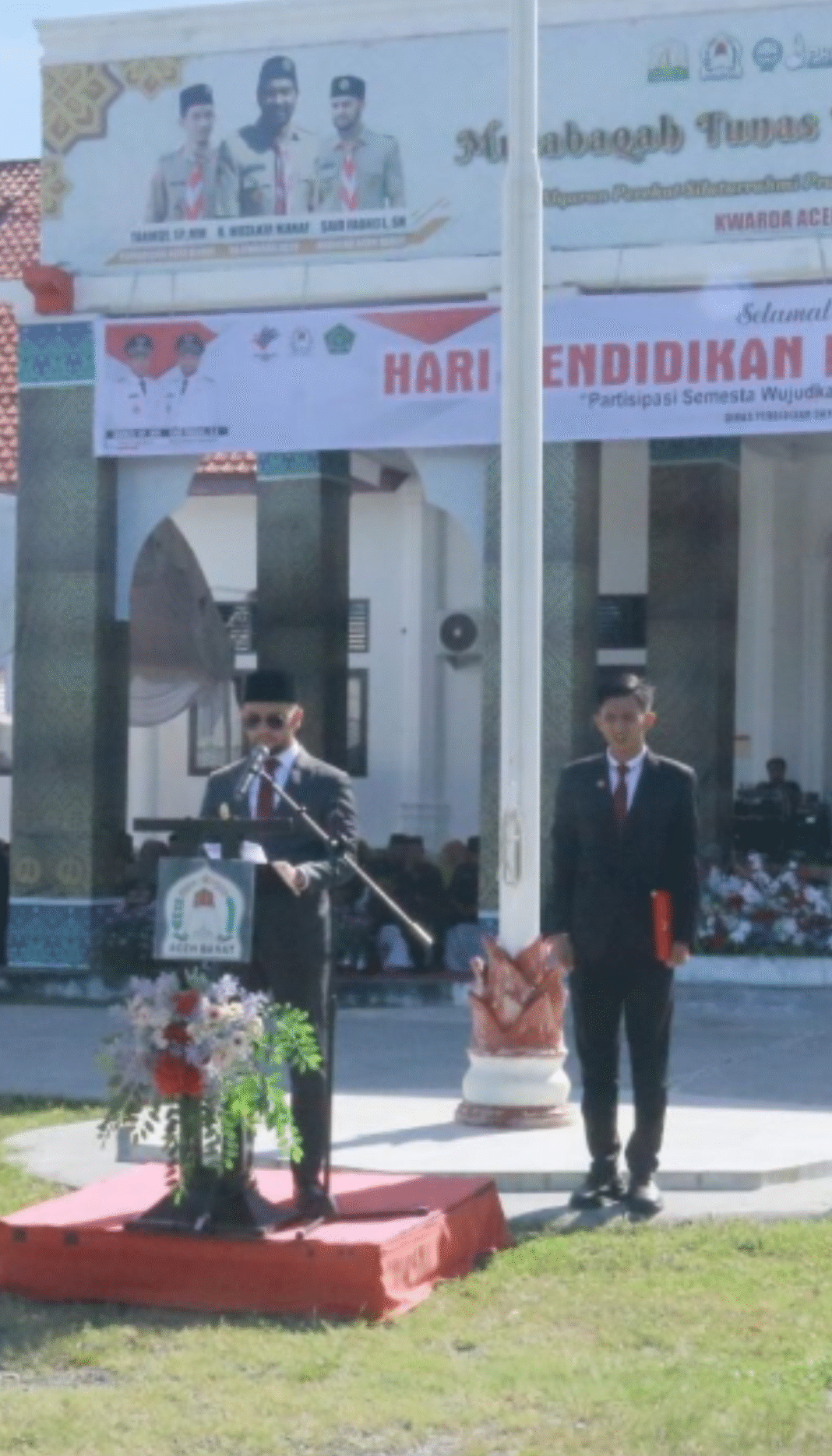 Wakil Bupati Aceh Barat, Saed Fadhiel yang bertindak selaku Inspektur Upacara dalam Upacara Hardiknas tahun 2025 pagi tadi secara mengejutkan turun ke tengah lapangan dan melanjutkan upacara sambil berdiri tegap di bawah teriknya matahari pagi.