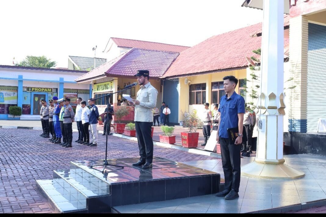Wakil Bupati Aceh Barat, Said Fadheil, SH, memimpin Apel Gelar Pasukan Operasi Ketupat 2026 sebagai bentuk kesiapan pengamanan arus mudik dan perayaan Hari Raya Idul Fitri 1447 Hijriah. Kegiatan tersebut digelar bersama unsur TNI, Polri dan berbagai instansi terkait di halaman Polres Aceh Barat, Kamis 12/3/2026