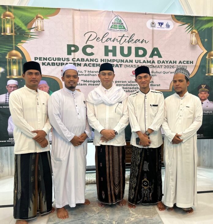 Ketua PW HUDA Aceh Barat melantik Pengurus baru Pengurus Cabang Himpunan Ulama Dayah Aceh (PC HUDA) Kecamatan Meureubo Pada malam ke 18 Ramadhan yang berlangsung di Mushalla Pasantren Ruhul Qur’ani Gampong Lapang pada Sabtu, 07/3/2026
