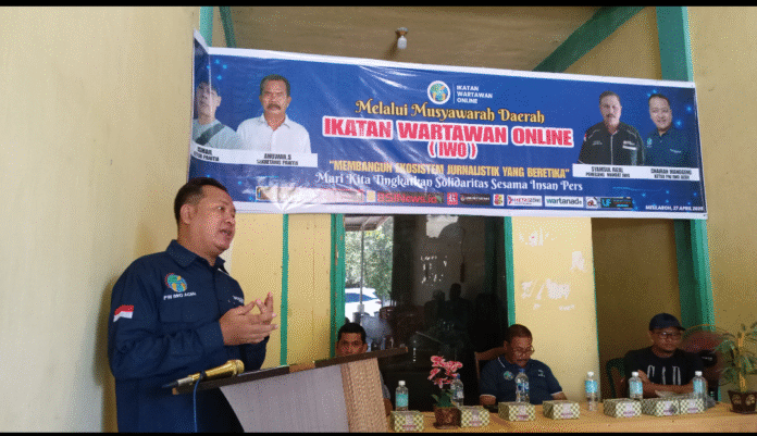 Ketua Ikatan Wartawan Online (IWO) Provinsi Aceh, Chairan Manggeng, mengajak seluruh insan pers di Aceh Barat untuk mempererat solidaritas dan membangun ekosistem jurnalistik yang beretika. Ajakan ini disampaikan Chairan saat memberi sambutan pada Musyawarah Daerah (Musda) IWO DPD Kabupaten Aceh Barat, Minggu (27/4/2025), dengan tema “Membangun Ekosistem Jurnalistik yang Beretika: Mari Kita Tingkatkan Solidaritas Sesama Insan Pers”.