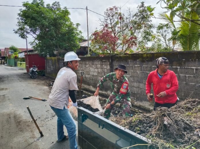 Palangka Raya – Babinsa Koramil 01/Pahandut Kodim 1016/Palangka Raya, Serka Setiyo bersama masyarakat Gotong Royong memperbaiki parit draniase dan bahu jalan, di Jalan Nenas, Kelurahan Pahandut, Kecamatan Pahandut, Kota Palangka Raya, Rabu (11/6/2025).